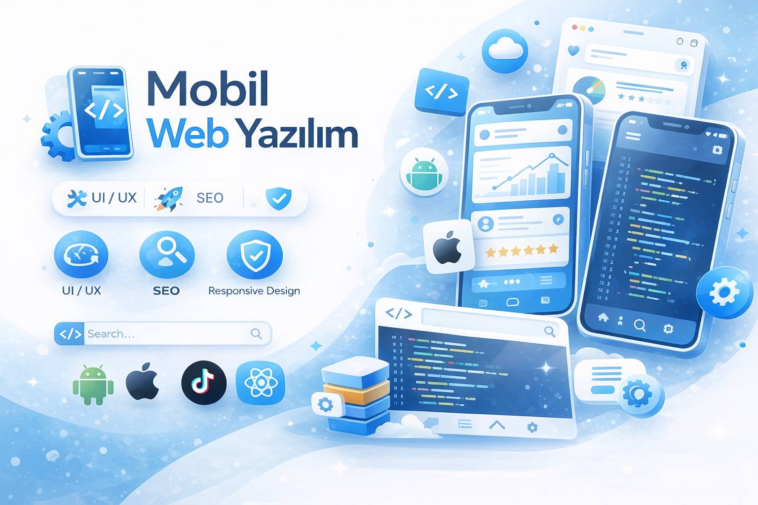 Hazırladığımız web ve mobil uygulamalar; hızlı, güvenli, SEO uyumlu ve ölçeklenebilir yapılarıyla markanızın dijitalde güçlü bir duruş kazanmasını sağlar.